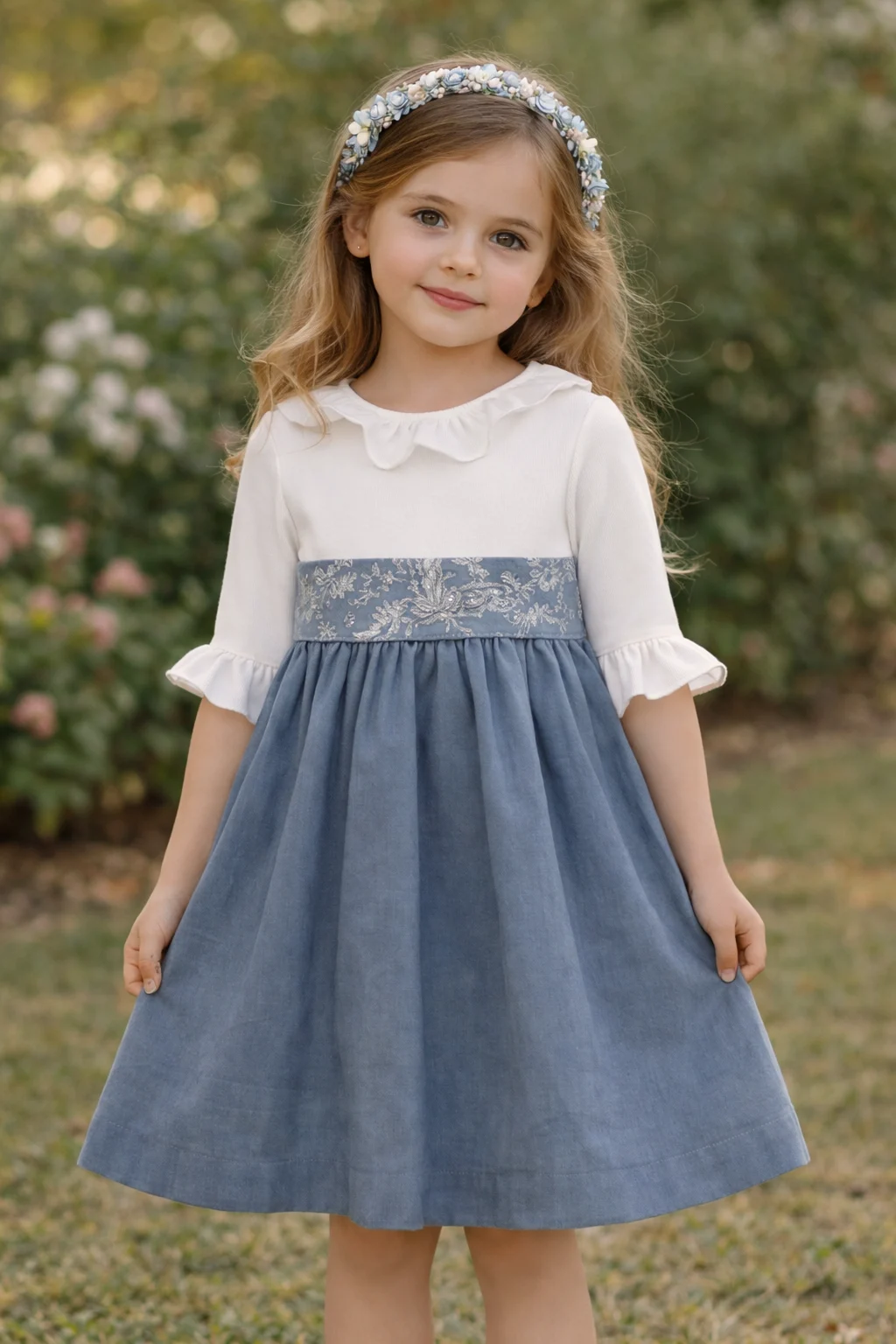 Conjunto  confeccionado con cuerpo en algodón satinado, un tejido suave y elegante que aporta un acabado delicado. El diseño se completa con falda en lino color pizarra, que añade contraste y un estilo natural al conjunto.